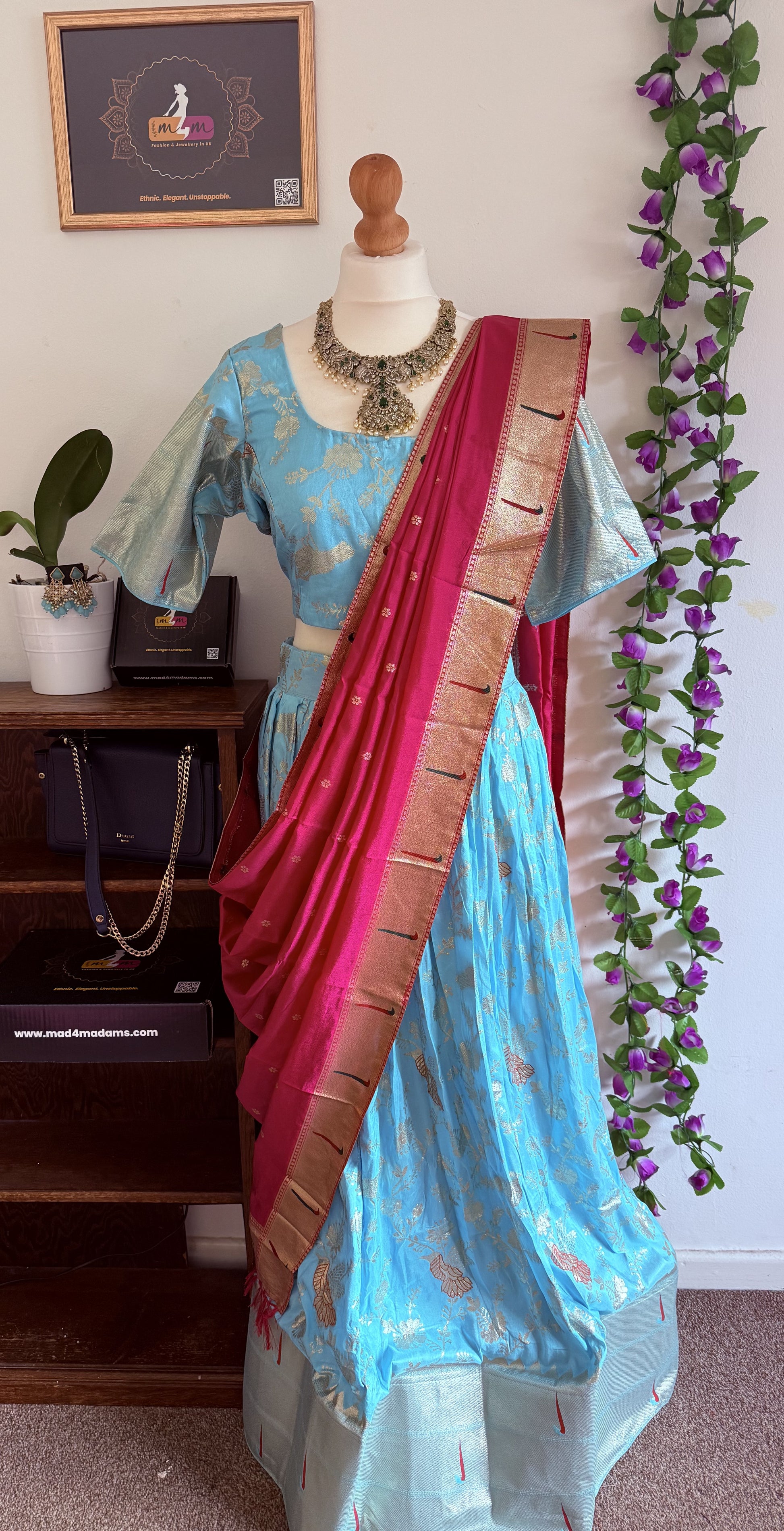Beatiful banarasi silk lehanga ready to wear set - Sky Blue & pink