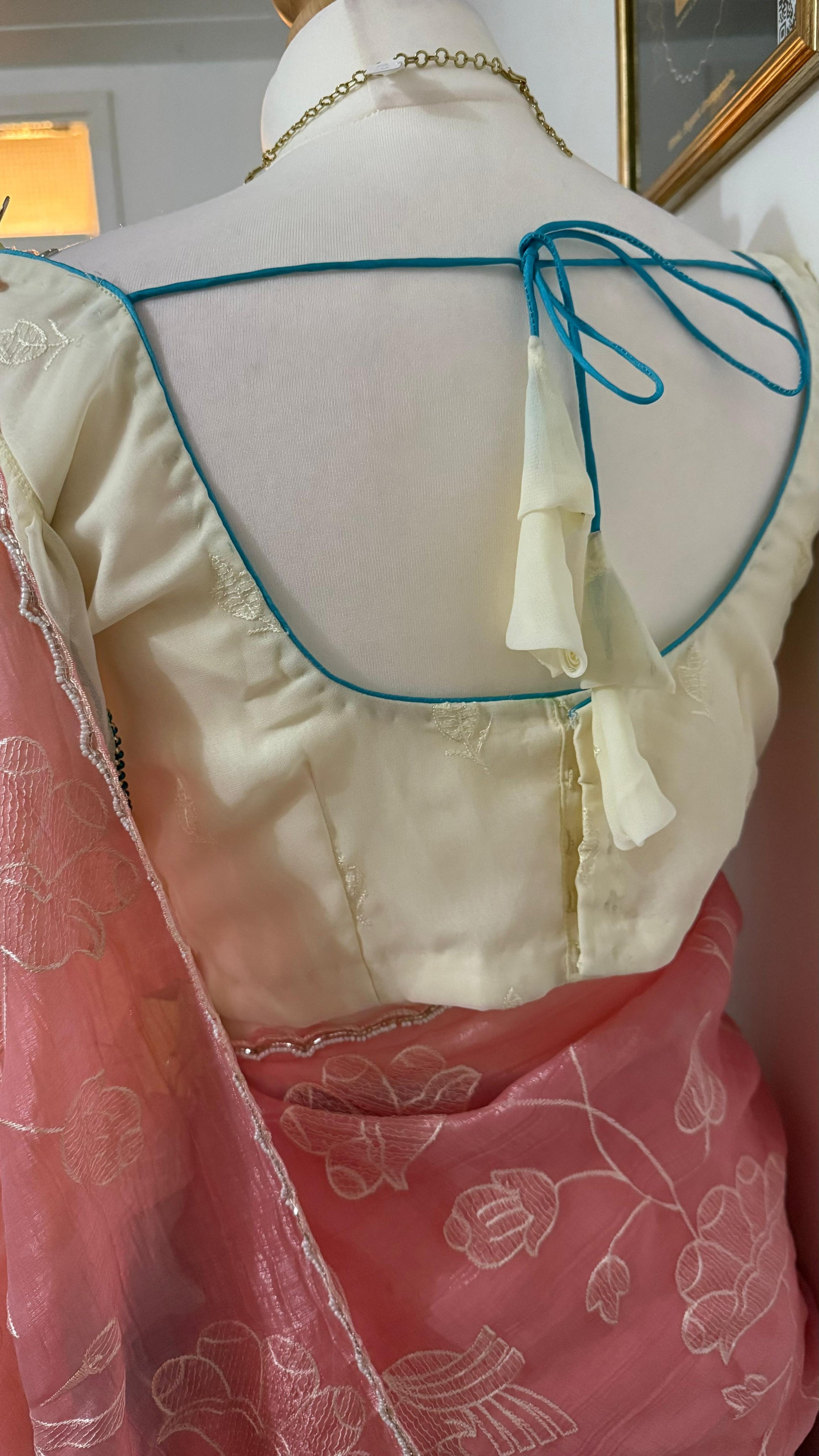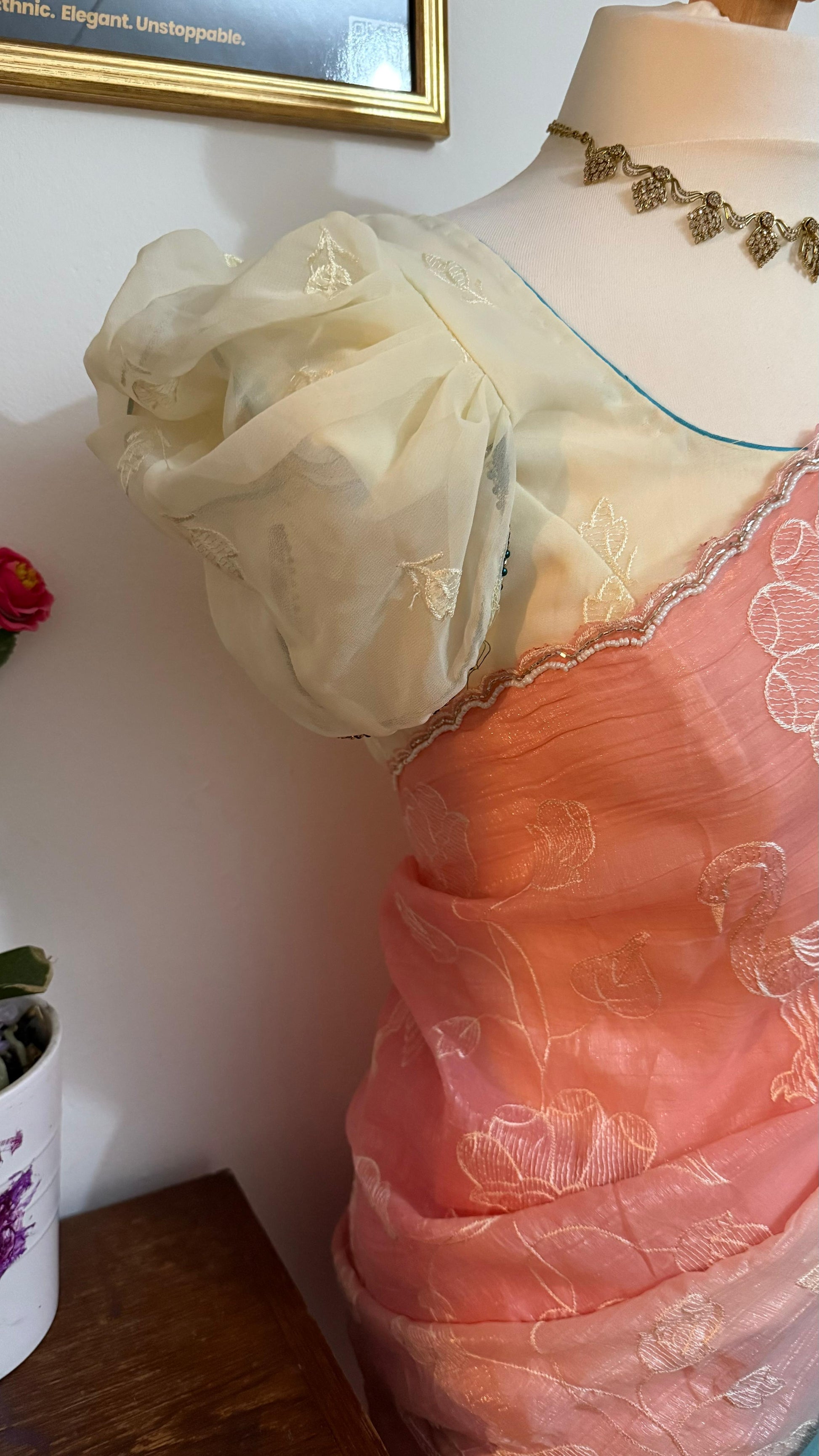 Designer Dual shade embroidery saree with bead work combo with Stitched Blouse