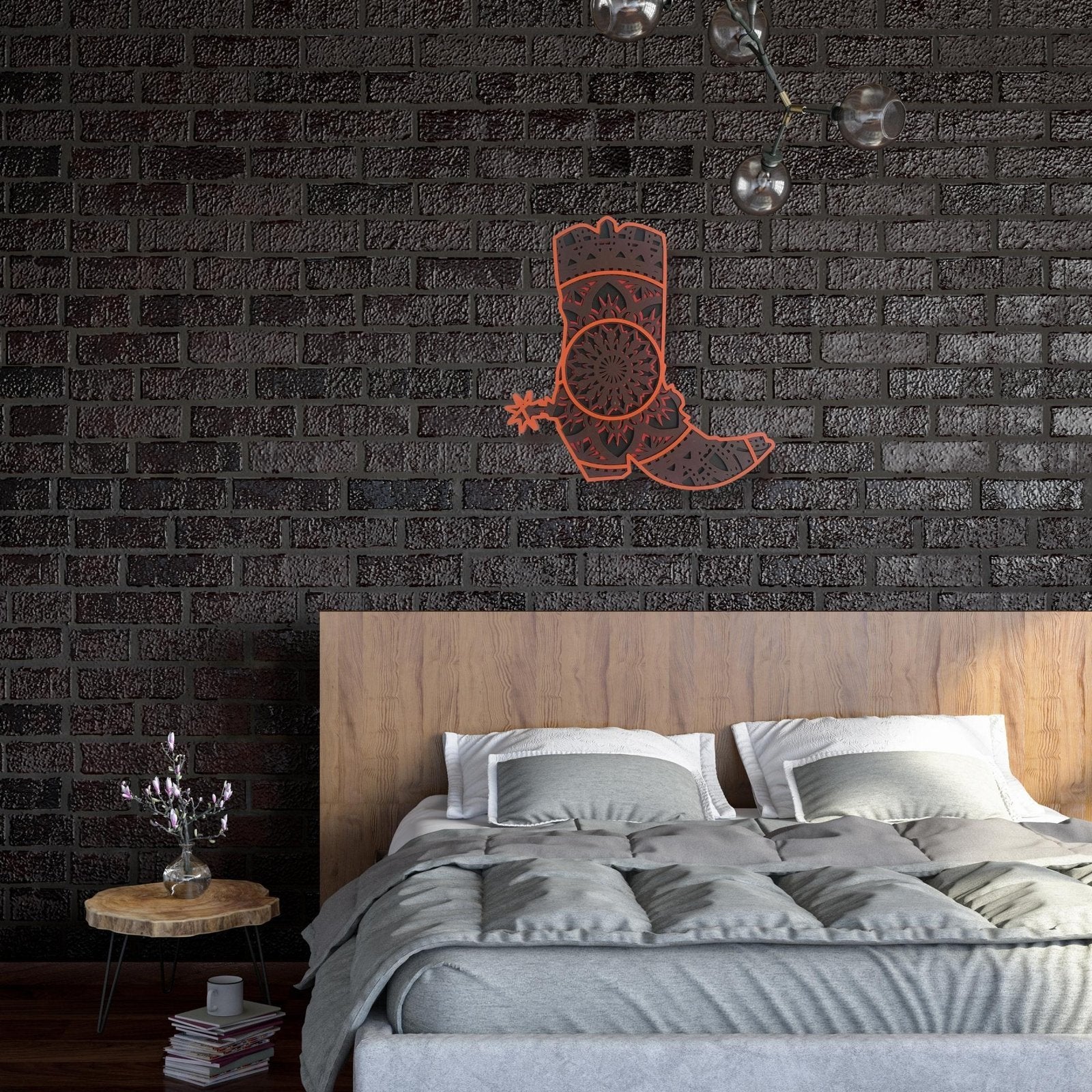 - This cowboy boot decor art adds a fun element to your home decor. This mandala Cowboy Boots Art is ideal to enhance the walls of your bedroom, living room, lobby, or staircase.