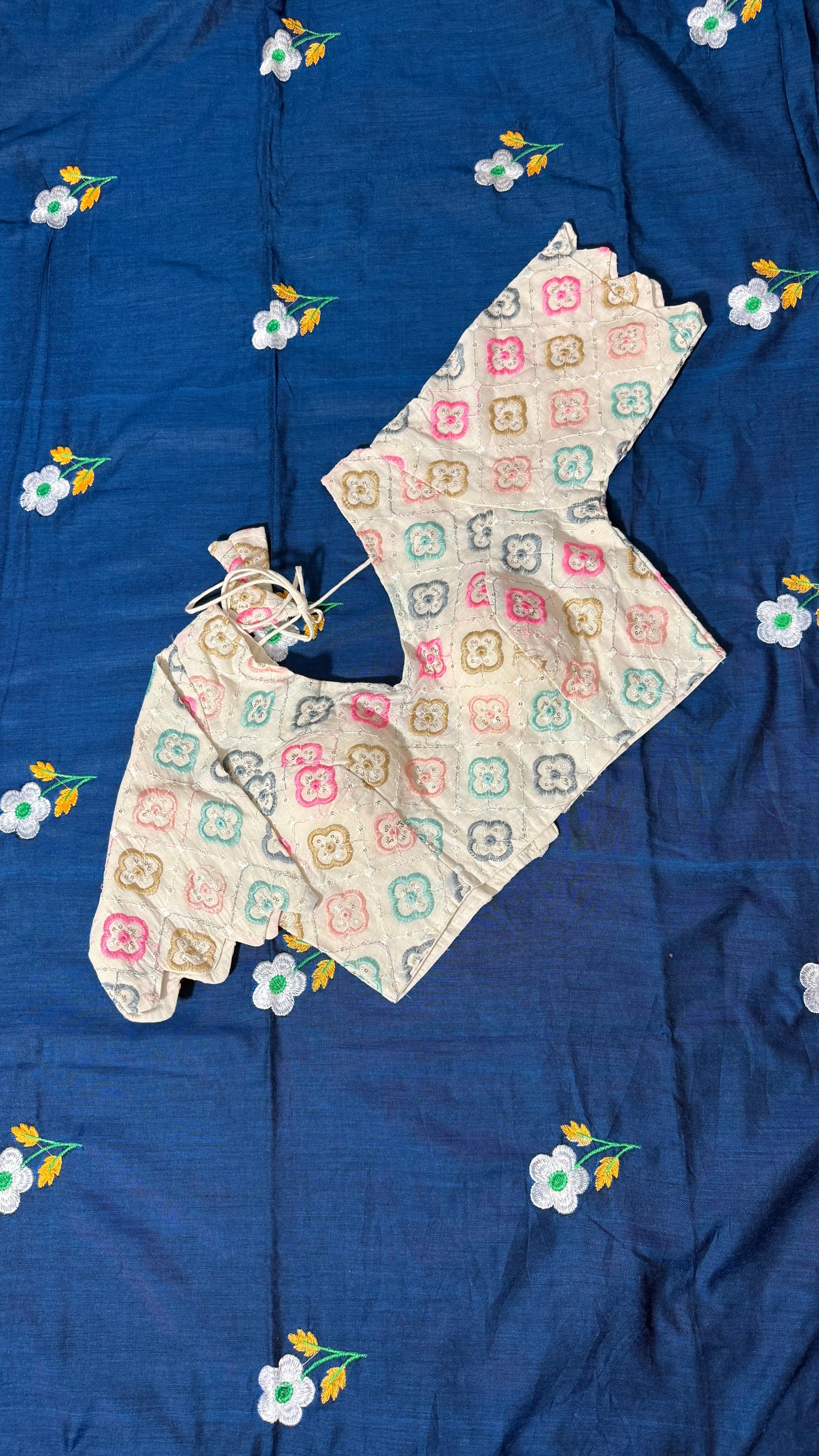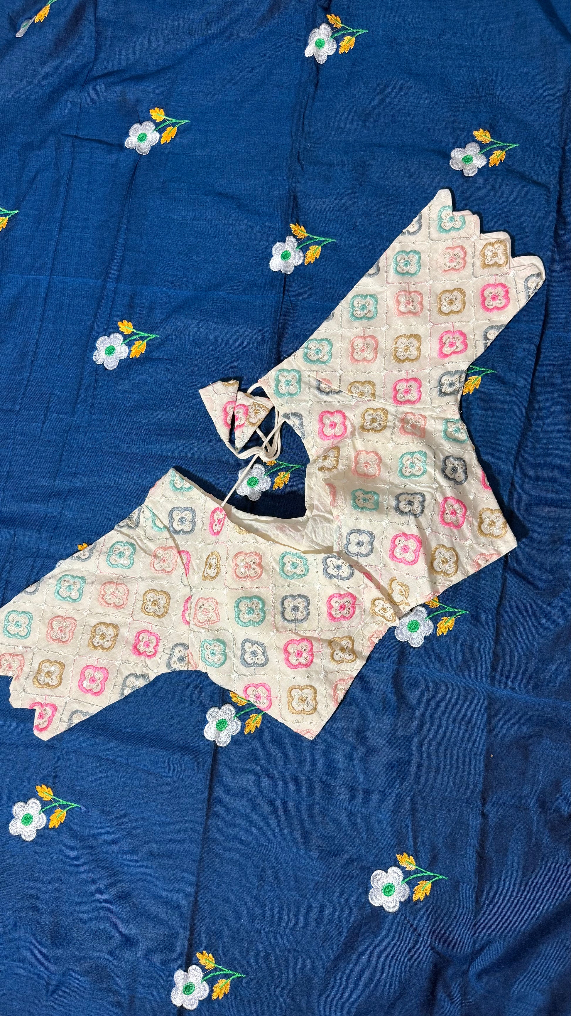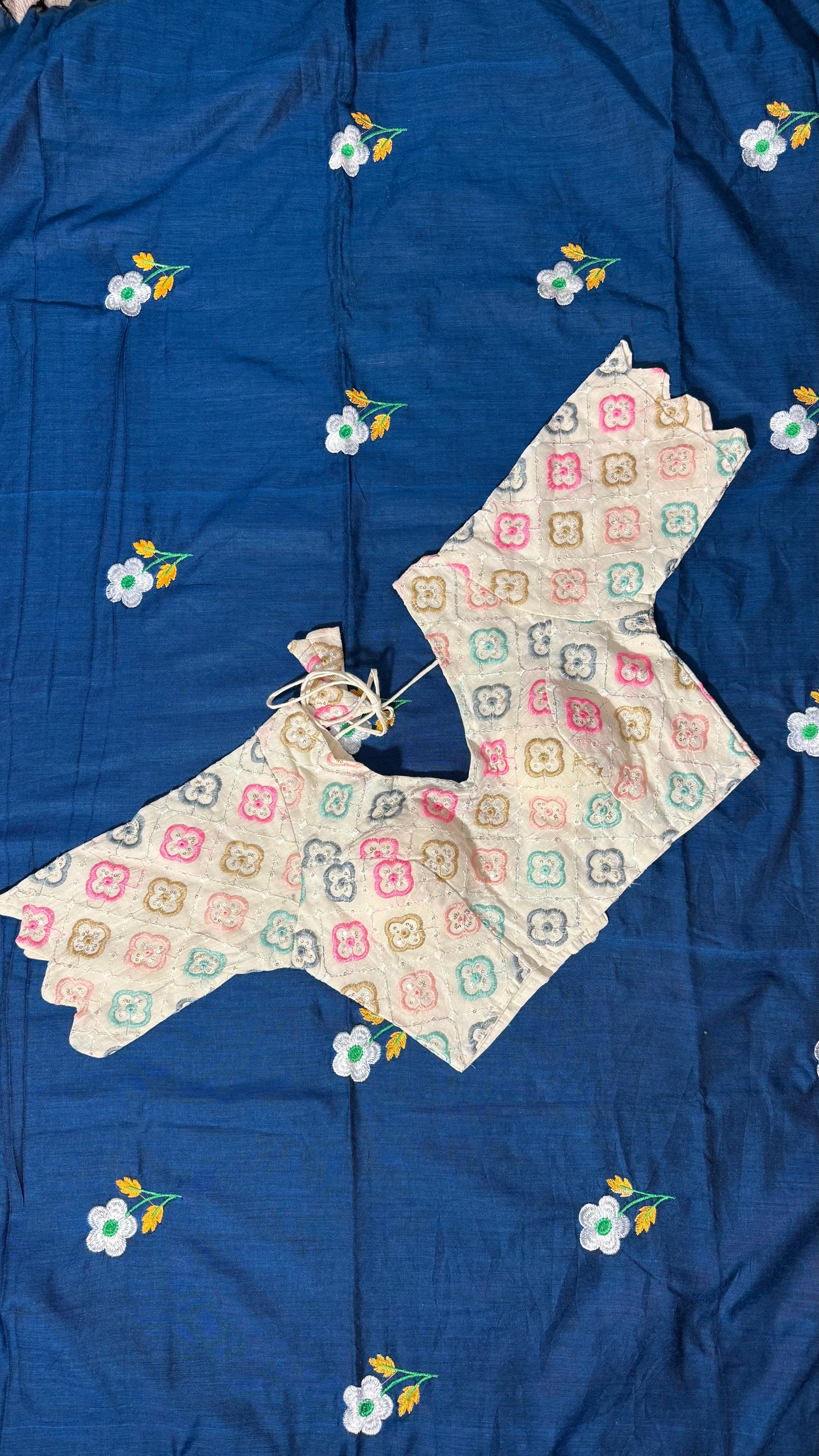 Flower Embroidery Kadhi Cotton Saree Combo -Saree with Matching Blouse