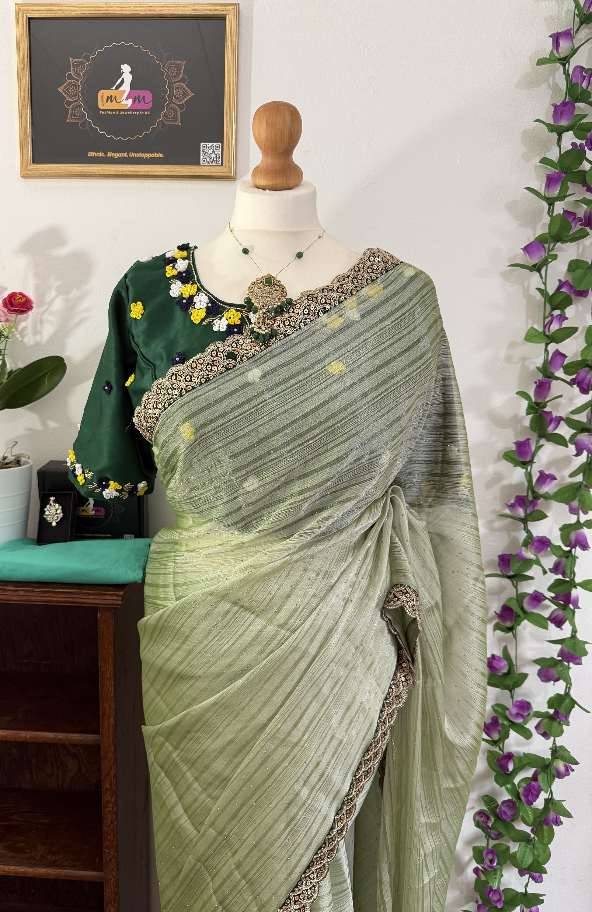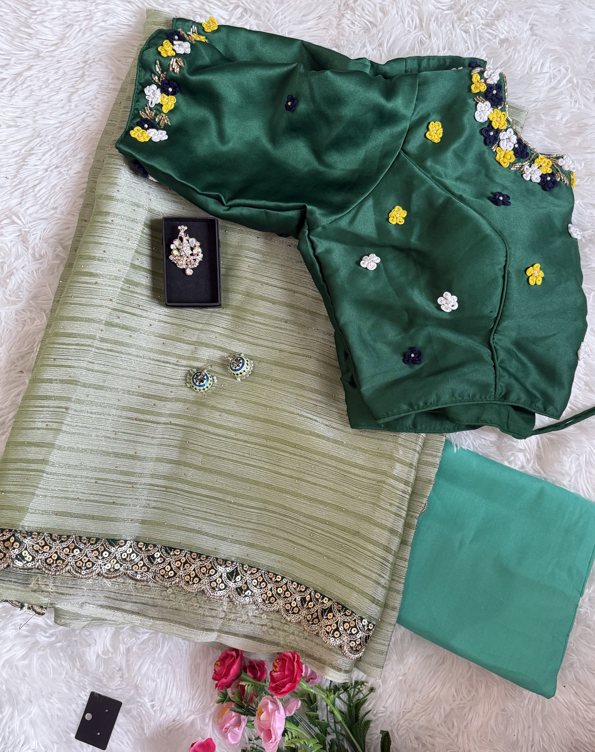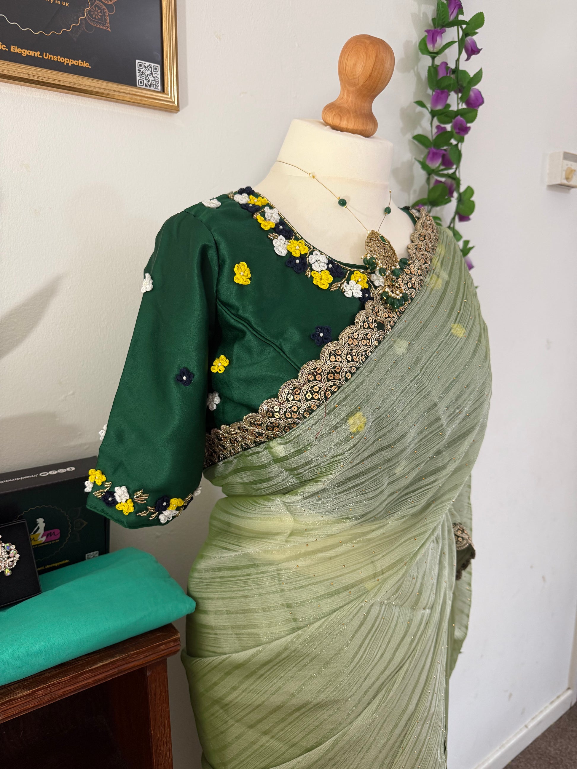 Blouse: Stitched blouse (Upto 38 size- (Alteration availble-Chargers apply)