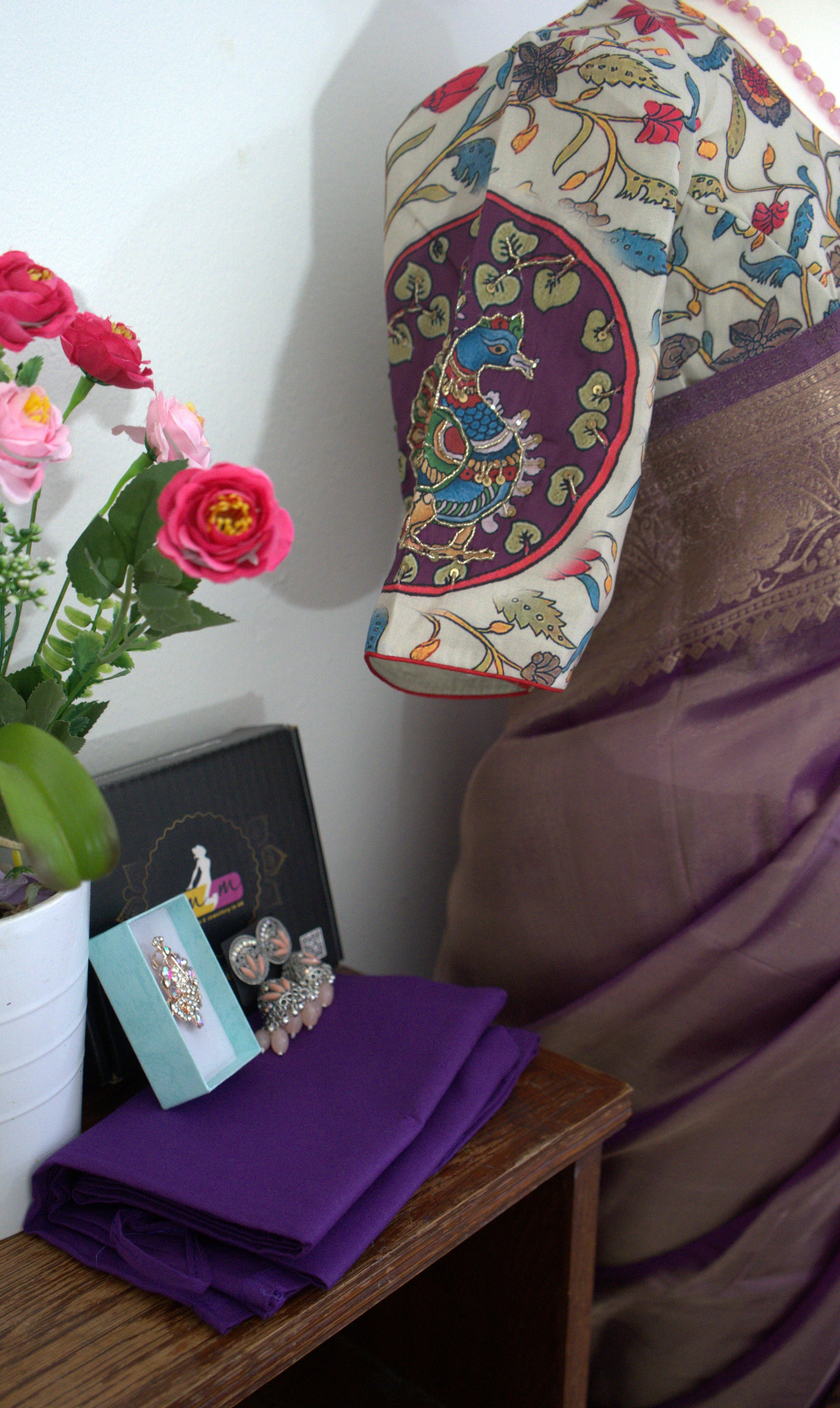 Blouse: Stitched matching blouse (38 Inches-margin up to 42– Alteration available, charges apply)