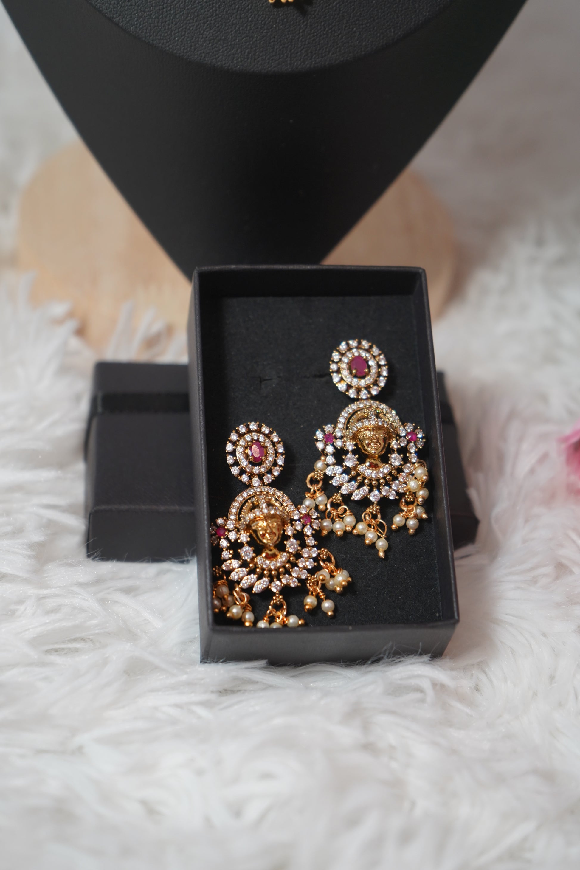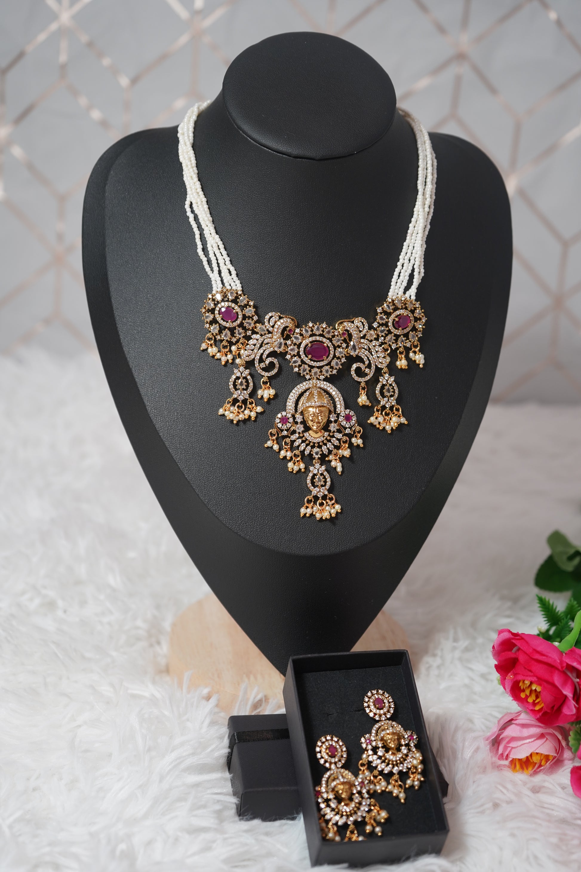 White beads with gold-plated necklace set temple inspired detailing- white