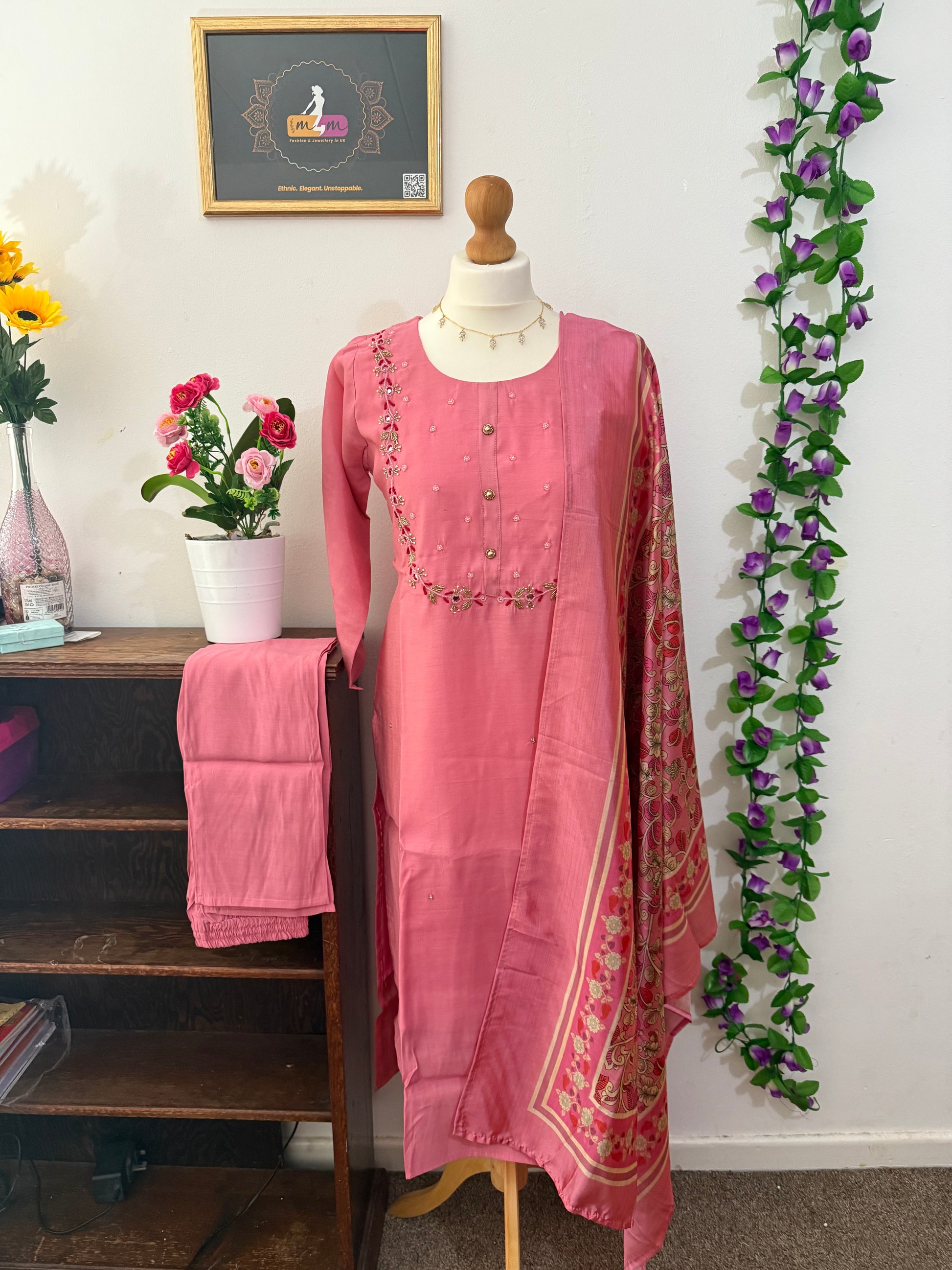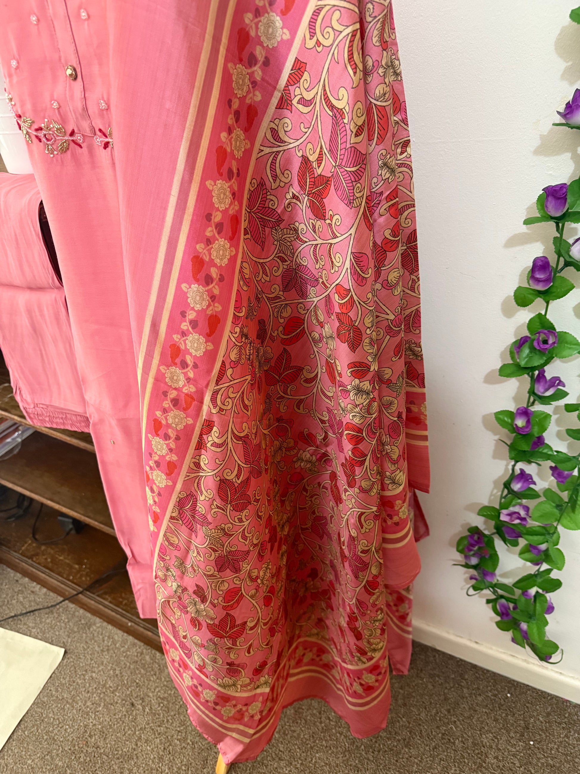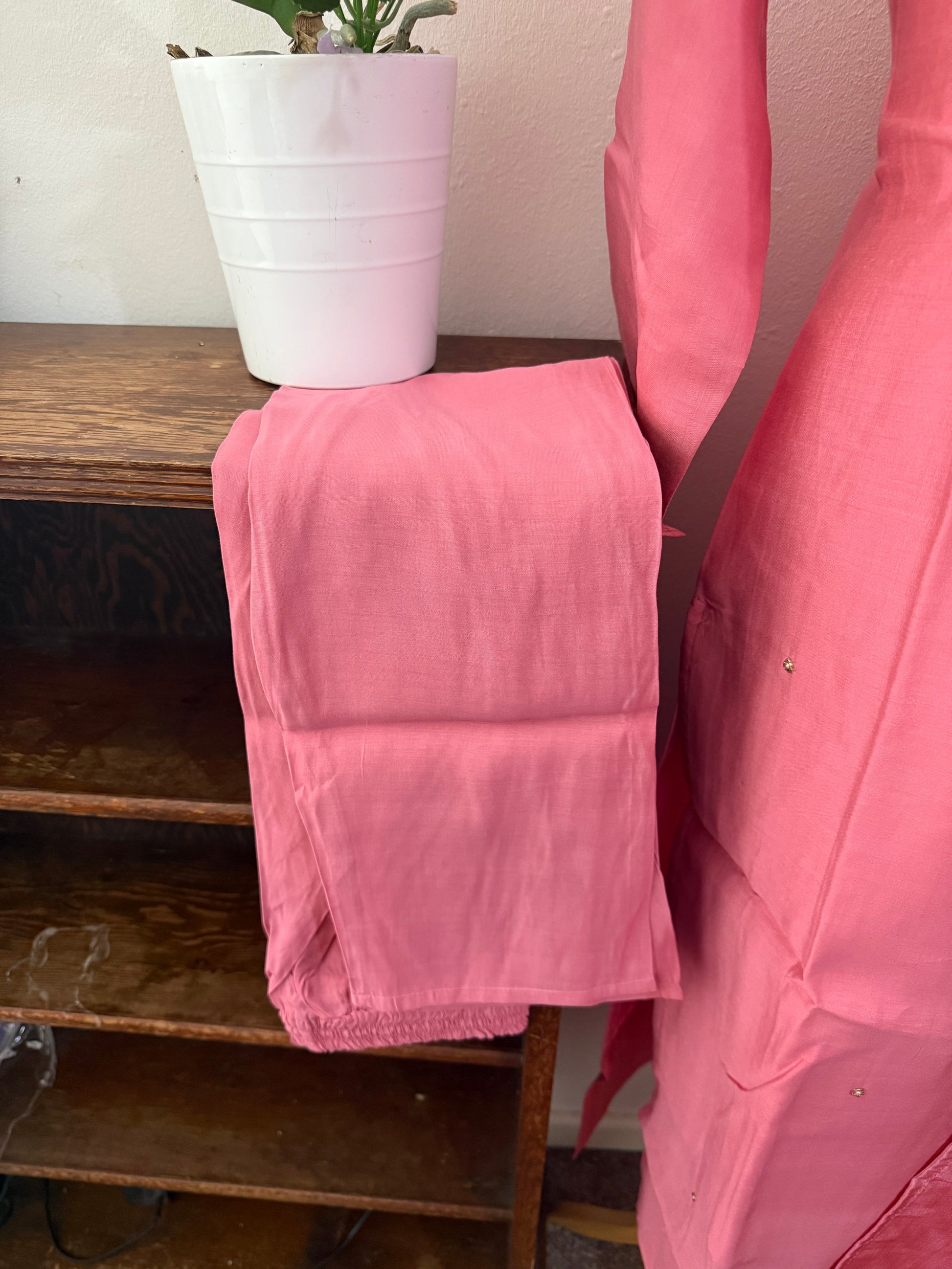 Semi Party Wear 3 piece set - Kurti, bottom and dupatta - Baby Pink