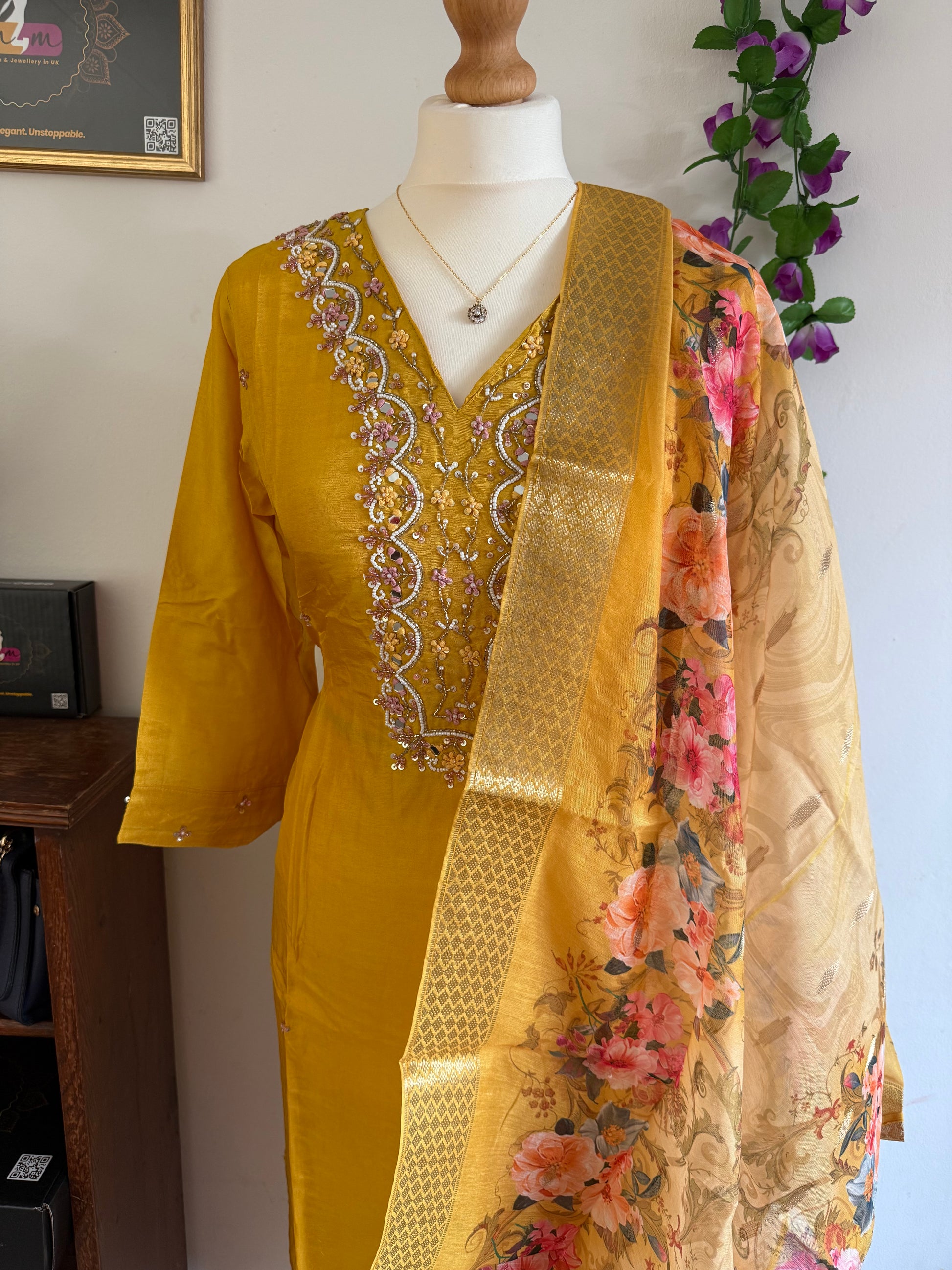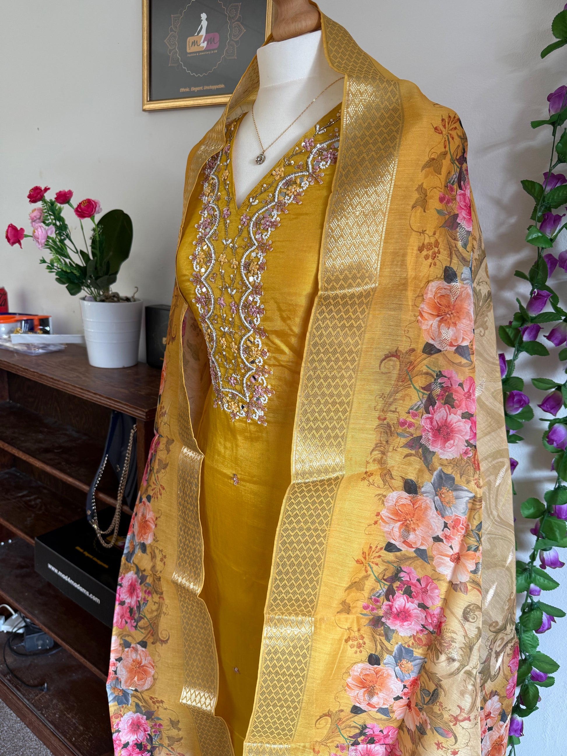 Dola Silk Designer 3 piece Kurti with bottom dupatta - Yellow